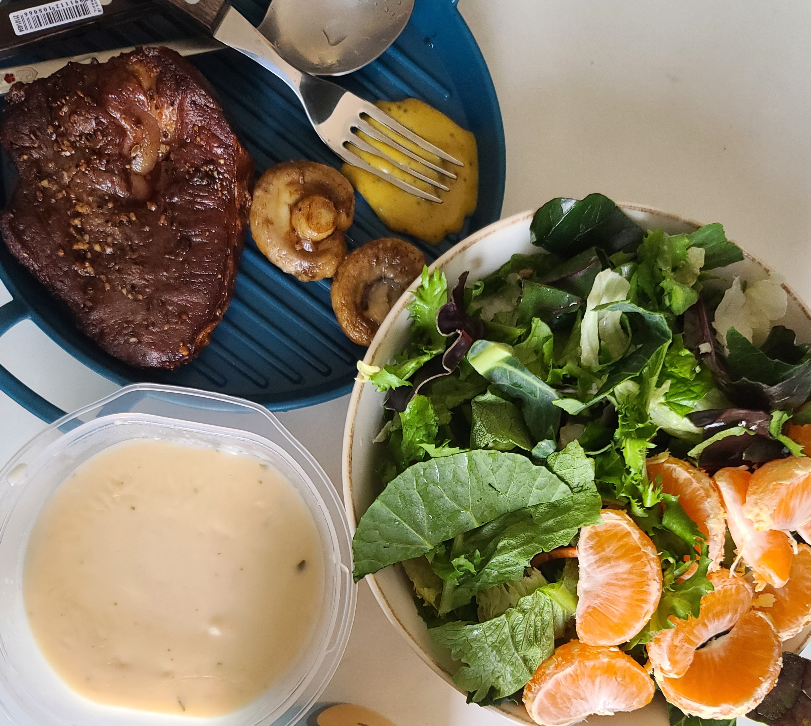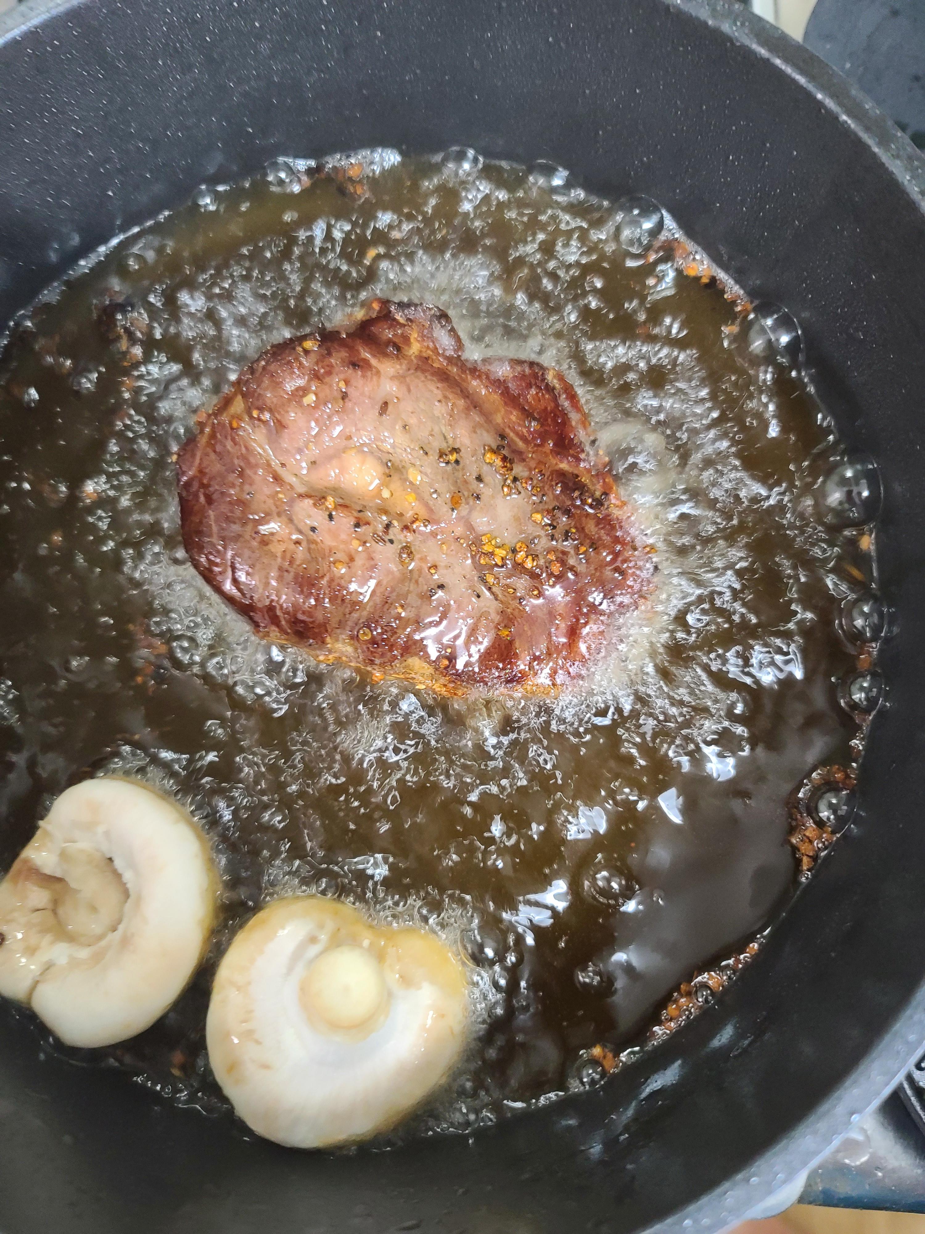 -부채살(스테이크용) -버섯 등의 가니쉬 - 에어프라이어 - 올리브유 -버터