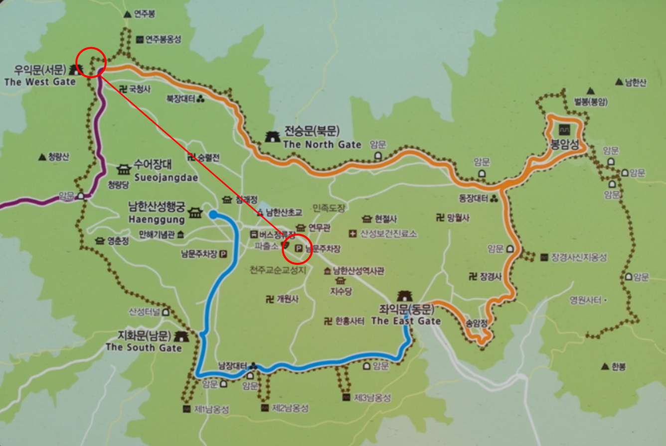 남한산성은 광주방면과 성남방면으로 진입로가 나뉘는데요 좀 더 숲이 우거진 자연적인것을 좋아하시는 분은 성남방면으로 진입하시길 추천 드립니다.
