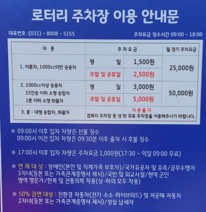 주차요금은 종일주차 기준 평일 3000원/휴일 5000원이며