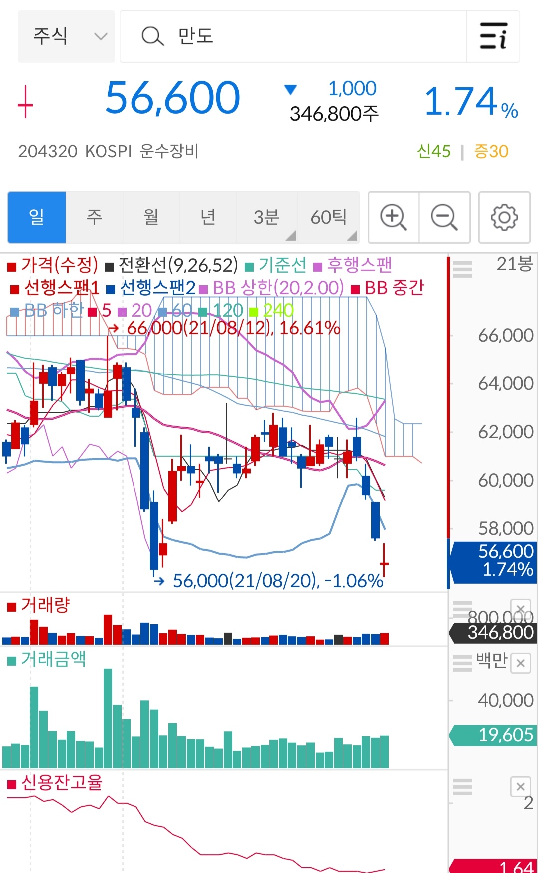 최근 연이은 지수하락으로 주가는 곤두박질 치고 있으나 현대자동차와 기아에 공급하는 제어부품이 바뀌며 매출증가세가 이어질 전망으로 반등의 기회가 있어 보입니다. 신용 잔고율도 많이 줄었구요