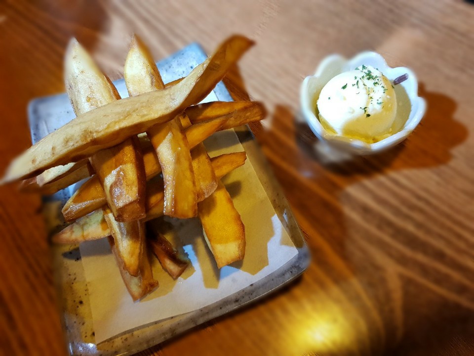 이렇게 두꺼운 고구마스틱도 처음 봤지만 정말 맛있는건 옆에 저 소스!