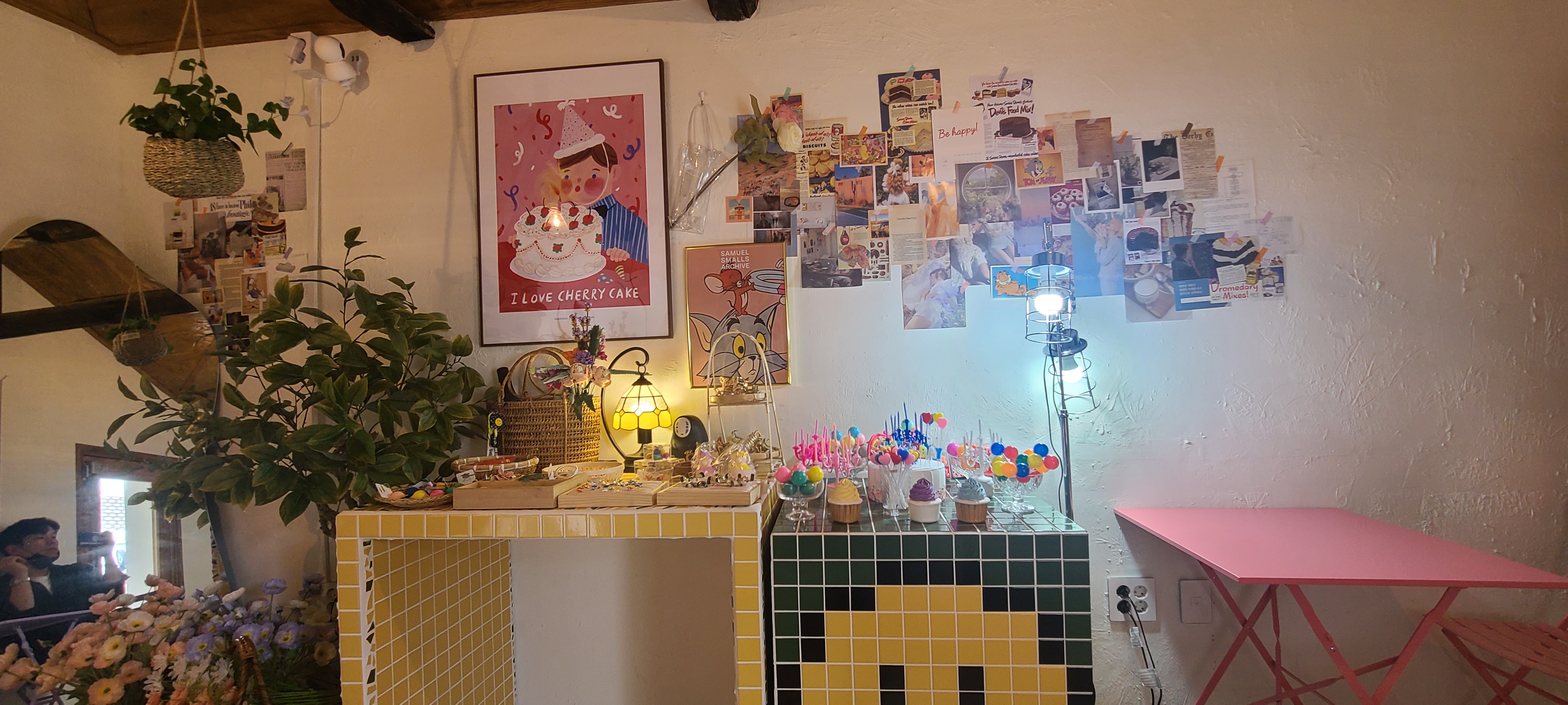 내부는 외부의 차분한 모습과는 또 다른 모습이었는데요 구옥의 흔적이 남아있는 공간 면면에 어울리는 소품들이 잘 배치되어 있어 마치 팝아트 전시장 같은 느낌이었습니다.
